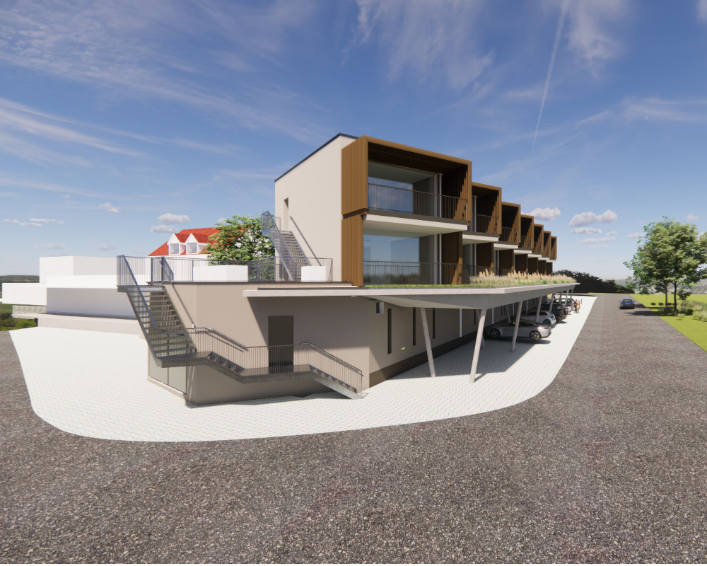 In einem eigenständigen Baukörper schaffen wir Raum für 22 Zimmer mit Terrasse oder Gartenzugang. Mit der neuen Gartenanlage wird durch heimische Pflanzen und natürliche Materialen der Bezug zur umliegenden Natur verstärkt und der Neubau fügt sich so perfekt in den Seewinkel ein.